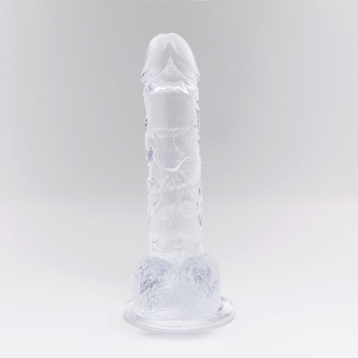 国内生産×国産素材のディルドです。「肌色のディルドは生々しい」という声にお応えして、清潔感のある純クリアカラーを作りました。吸盤付きで床や壁に固定できるので、色々な角度から自ら動くプレイもお楽しみいただけます。