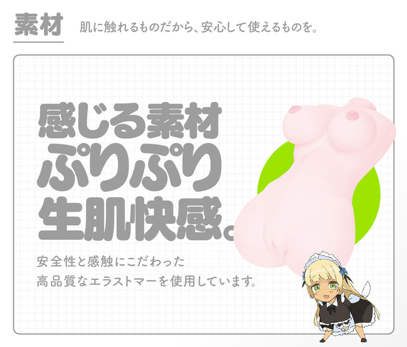 大人気「身長約100cm想定で究極の超リアルなイカ腹BODYのつるぺたちゃん」のソフトverは、よりしなやかで柔らかい女の子感でバージョンアップ!